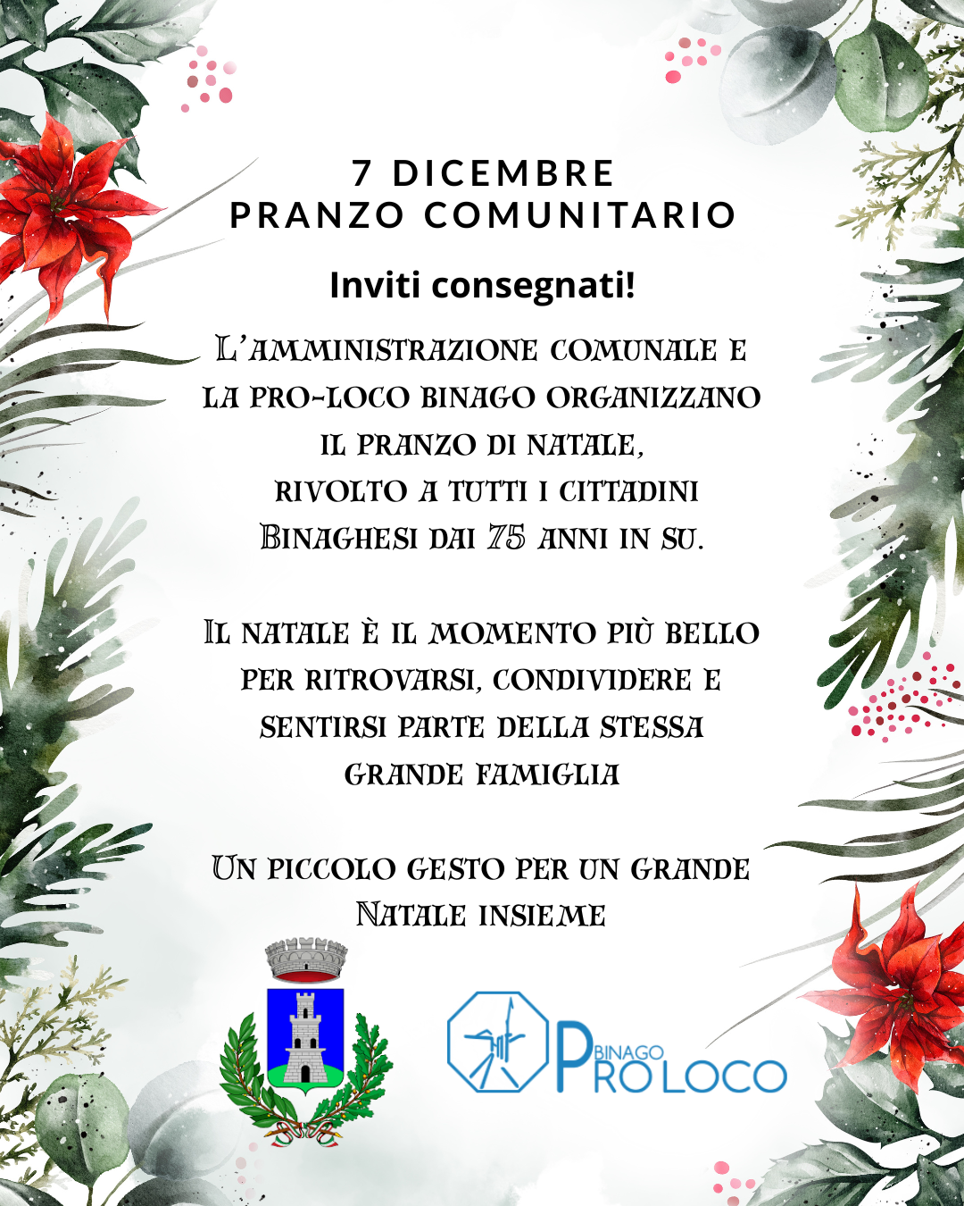 L’amministrazione comunale e la pro-loco binago organizzano il pranzo di natale,