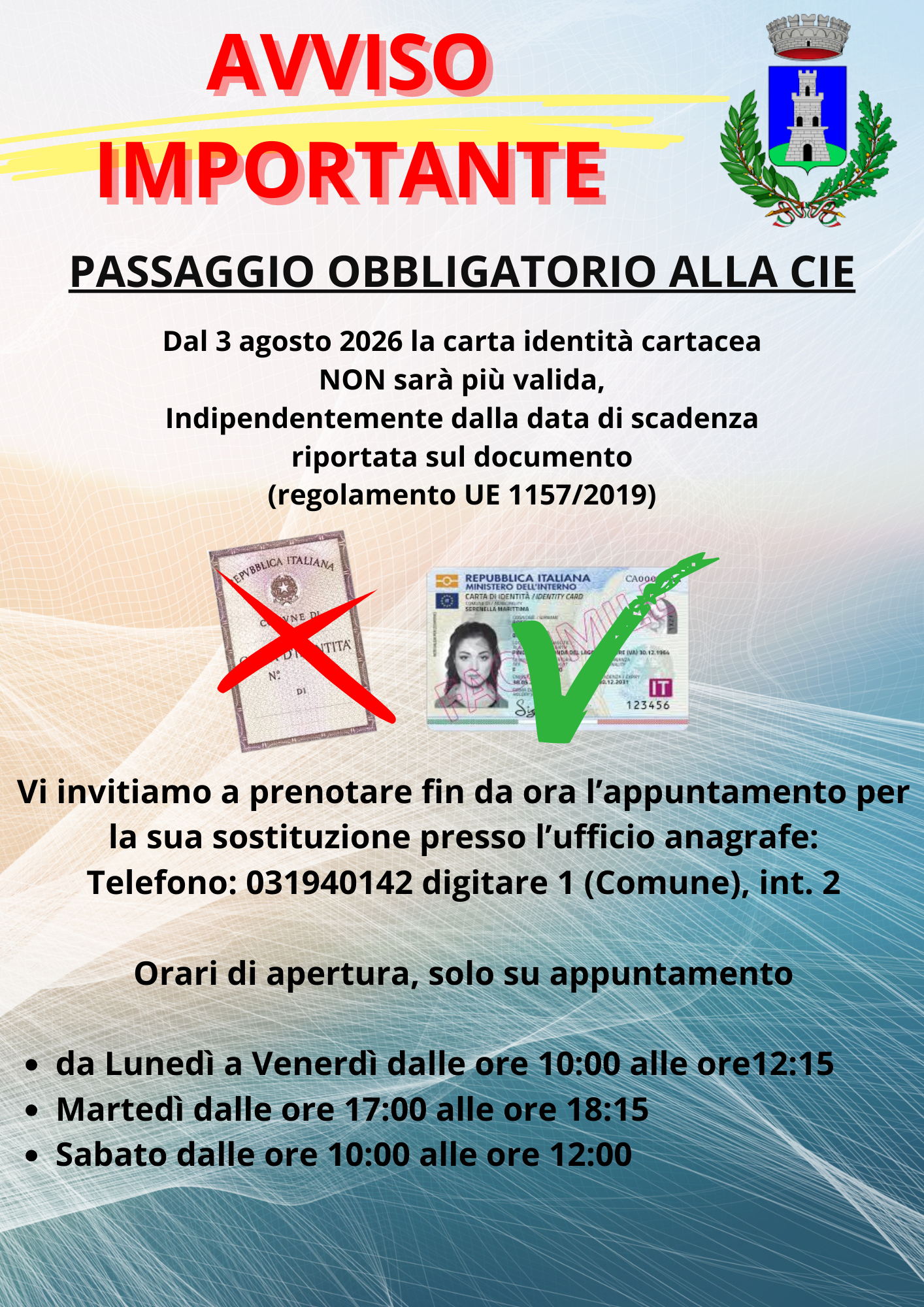 Vi invitiamo a prenotare fin da ora l’appuntamento per la sua sostituzione presso l’ufficio anagrafe: